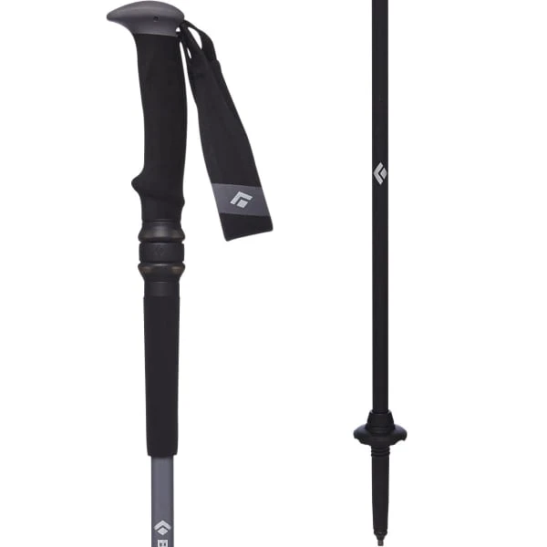 Their trail series trekking pole designed for four-season on-trail versatility, the Black Diamond Trail Pro Shock features the terrain-absorbing benefits of our Control Shock Technology, combined with the quick deployment and collapsibility of our new SmashLock quick-release technology. The SmashLock quick-release mechanism allows you to quick deploy the telescoping pole and lock it into place with an easy-to-hear click (keep the FlickLock Pro closed during deployment).
