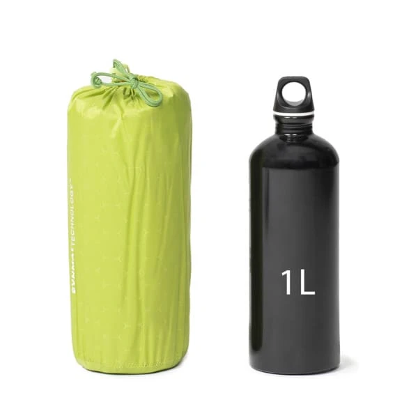 The inflation is easy and assured by the specific bag that quickly sends humidity inside. Finally, the outer fabric used is a 20D recycled polyester and certified Oeko-Tex 100.