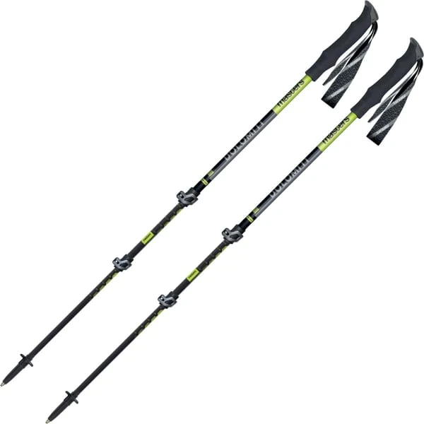 This adjustable pole, with its three sections of variable diameter, is made of Alutech , which combines strength and lightness. It incorporates a new Wing Lock system that allows for quick and easy adjustment of the tube to find the right fit for each situation. This pole combines comfort with an ergonomic grip and a single strap. Thanks to its compactness (65 cm when closed), this pole is very easy to take anywhere.