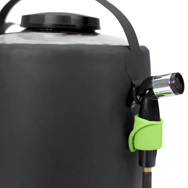 With its system, this model offers enough pressure to wash hair, wash dishes, rinse equipment, water plants or wash the dog. The large 5.8 gallon tank can also be quickly and easily pressurized with a foot pump and maintained at full pressure for 7-10 minutes of strong, continuous spray. Like a solar shower, simply place the black tank in the sun to gradually warm up, or fill it directly with hot water.