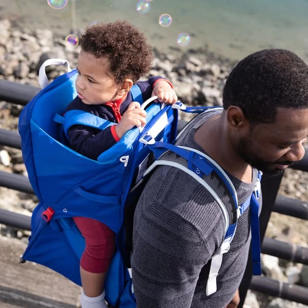 - LIGHTWEIGHT FOLDING FRAME – Our patent-pending lightweight stainless steel frame folds smaller than other standard child carriers making it easy to travel with and store. The frame locks in place to fully support the child and provide a stable platform to set the child carrier down.