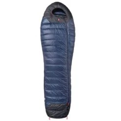 Developed for winter activities, this model can also be used as a year-round sleeping bag. Filled with white duck down, it provides a big dose of warmth in a very lightweight Z-construction that features a sloped divider between the down chambers to provide even more warmth.