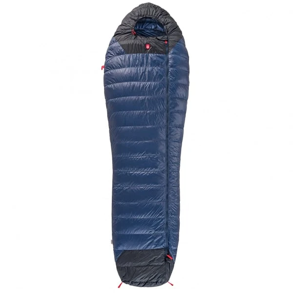 Developed for winter activities, this model can also be used as a year-round sleeping bag. Filled with 700 count white duck down, it provides a big dose of warmth in a very lightweight Z-construction that features a sloped divider between the down chambers to provide even more warmth.
