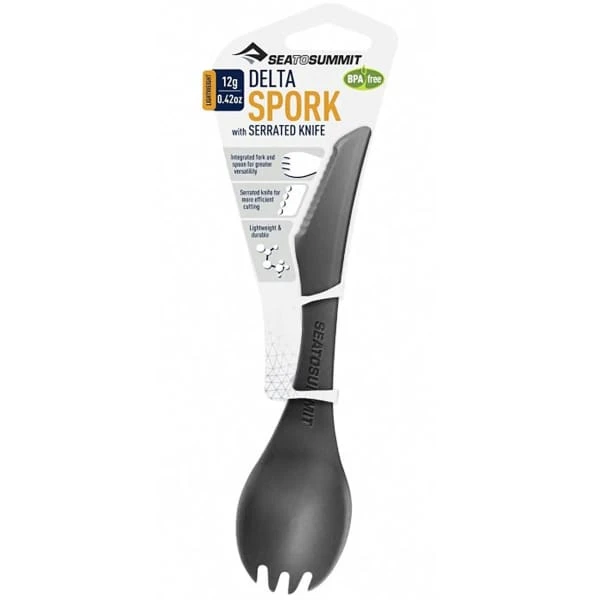 The 3-in-1 DELTA COUVERTS 3 IN 1 FORK/ KNIFE/ SPOON from SEA TO SUMMIT is a fork/knife that is highly effective for adventurers who need to travel light. Incurve, the fork part can also be used as a spoon.