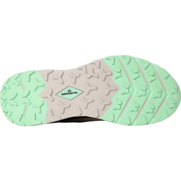 Featuring the new VECTIV technology that combines a lightweight plate with great support, a midsole with a rocker geometry andSurface CTRL traction, this technology is designed to maximize energy on the trail. This shoe has a seamless upper that is flexible and less restrictive. In addition, the curved shape of the sole provides incredible energy return, while the grippy sole keeps the foot secure on rough terrain.