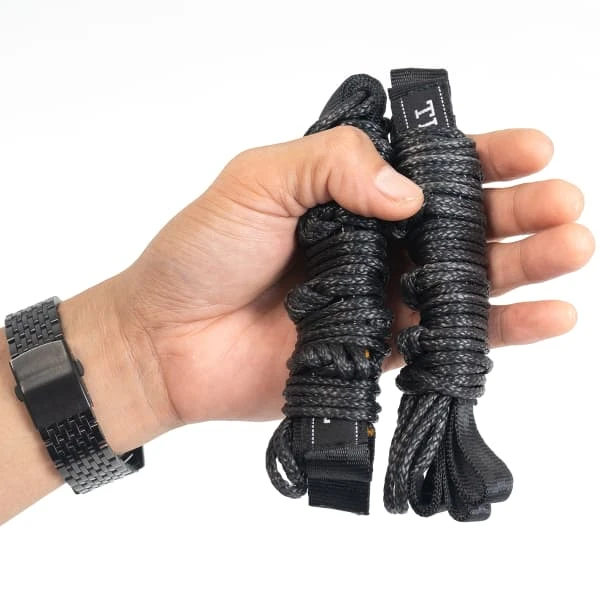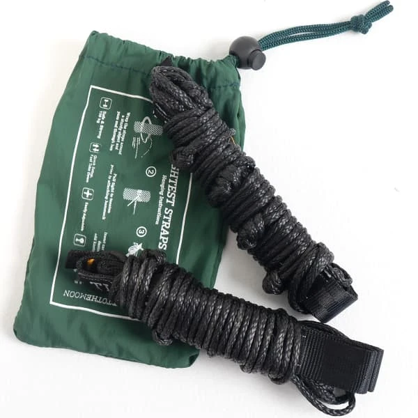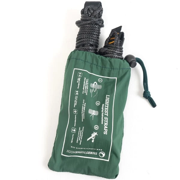 Incredibly lightweight (95g), this kit features polyester webbing and UHMPE ropes to safely hang a lightweight hammock.