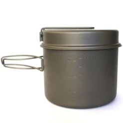 The LIGHT TITANIUM 550ML from Toaks is a pot with a folding handle that makes eating outdoors a breeze.